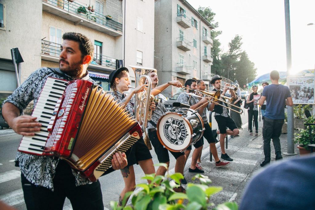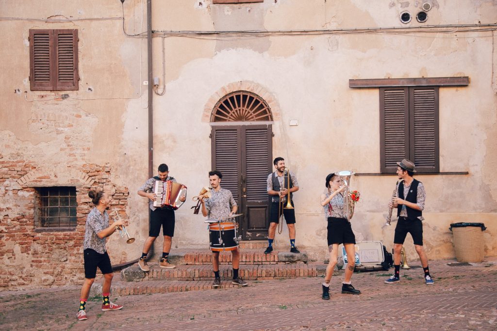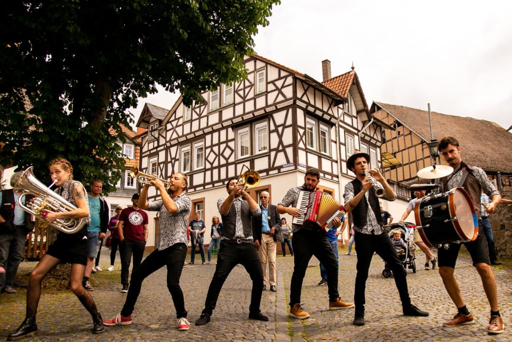 Wherever Desmadre Orkesta performs, the party gets started! The band from Buenos Aires plays folk melodies and classics, in surprisingly new and virtuoso arrangements. Three brass players, an accordionist and a rhythm section take the audience on a musical journey from Balkan brass to Colombian cumbias and swing from New Orleans to Argentinian milongas. The fact that the ensemble was formed by musicians from a theatre production nine years ago is still apparent today: With Desmadre Orkesta, the performance is at least as important as the music. The band members are constantly in motion, dance, interact with the audience and are bursting with energy and good humour. No wonder they enjoy performing as a marching band on the street as much as on big stages. Every concert is a joyous, intense and dynamic performance that is guaranteed to delight the audience.