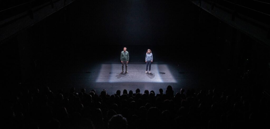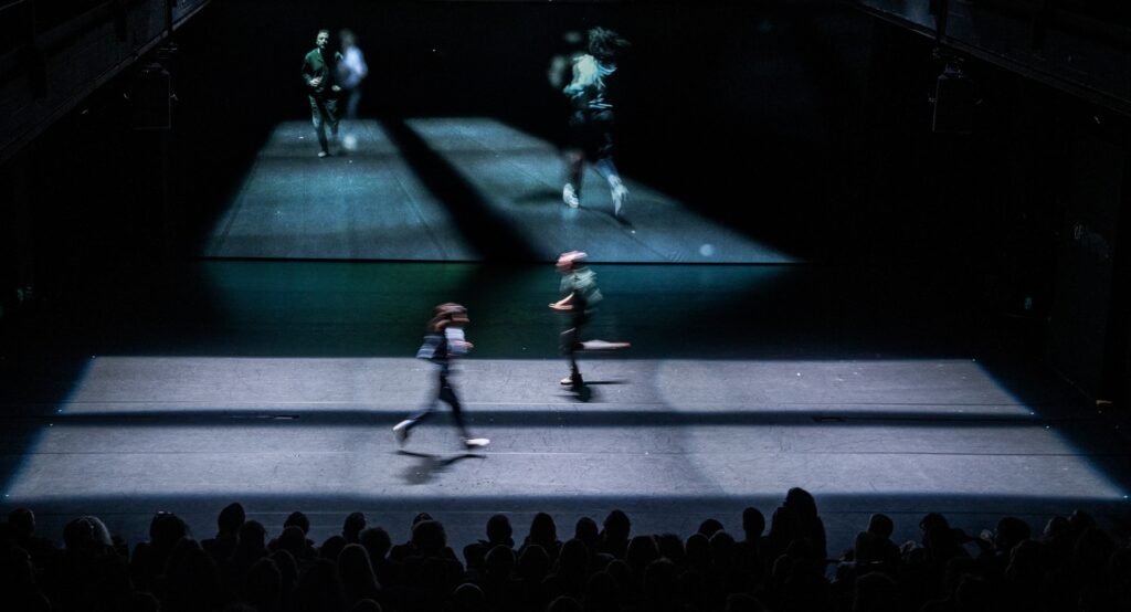 The fates of three long-distance runners intertwine in this acclaimed production by the renowned Iranian Mehr Theatre Group to create a poetic stage thriller with magnificent protagonists, minimalist sets and powerful film sequences. A woman is imprisoned as a political prisoner of the mullah regime; her husband is allowed to visit her once a week. But what do you talk about when every word is listened to and there is little new to report? The two have completed marathons together, but now their relationship is running out of steam. Only hesitantly and at his wife’s urging does the man take on a new task: he becomes a running coach for a blind woman and makes her lifelong dream of participating in the Paris Marathon come true. The intimacy of their training sessions leads to a close bond with the young woman – and a dangerous plan to escape to a different life and make a political statement: they want to reach Great Britain by crossing the 38-kilometre-long Eurostar tunnel to England overnight. But between the last train of the evening and the first train of the following day, which would catch them, there are only a few hours… Iranian director Amir Reza Koohestani creates a poetic web of relationships in which the hypnotic rhythm of running becomes a metaphor for the longing for freedom. Koohestani is considered one of the most important Iranian theatre makers of his generation. In Germany, he works at the Munich Kammerspiele, the Deutsches Theater in Berlin and the Thalia Theater, among others.