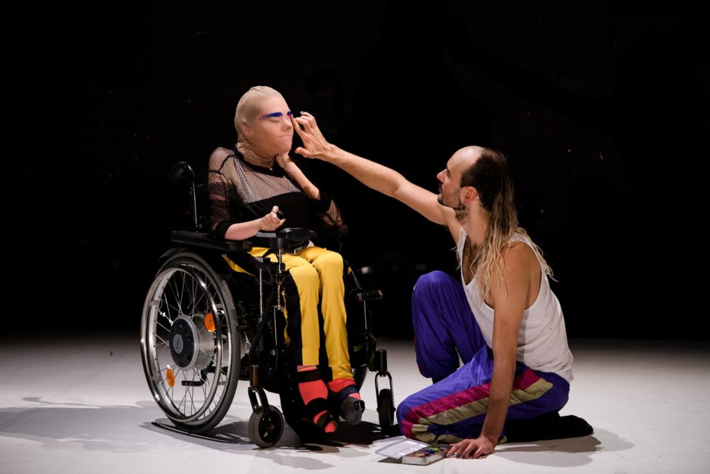 Die Schauspielerin und Sängerin Lucy Wilke wurde mit spinaler Muskelatrophie geboren und benutzt einen Rollstuhl, der Tänzer und Performancekünstler Paweł Duduś bezeichnet sich als Queer-Migrant-Feminist. Gemeinsam haben sie ein intimes, utopisch anmutendes Porträt ihrer Freundschaft entwickelt, die Grenzen sprengt. In einem humorvollen, sanften, sehr sinnlichen Tanz erforschen Wilke und Duduś, was der eigene und der andere Körper ist, wie wir ihn sehen, hören und fühlen, und hinterfragen so zugleich die Stereotypen und normativen Wahrnehmungen in der Gesellschaft und der Kultur. In sieben kurzen Kapiteln setzen die Performer*innen sich öffentlichen Blicken und Ohren aus und begegnen dem Publikum mit einer unbedingten Intimität. ›SCORES THAT SHAPED OUR FRIENDSHIP‹ achtet die Verschiedenartigkeit, feiert das Nicht-Normative und bietet Einblicke in eine alternative Lebens- und Seinsform.